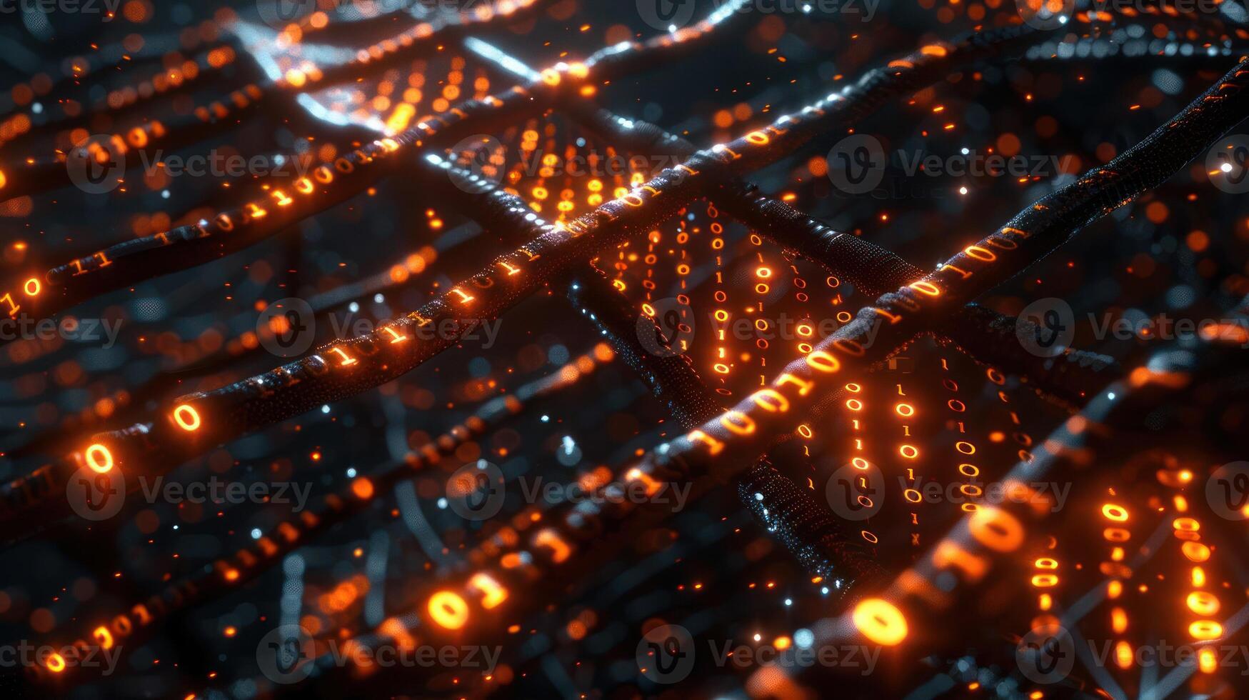 Abstract representation of interconnected data streams with binary code in a digital environment Pro Photo