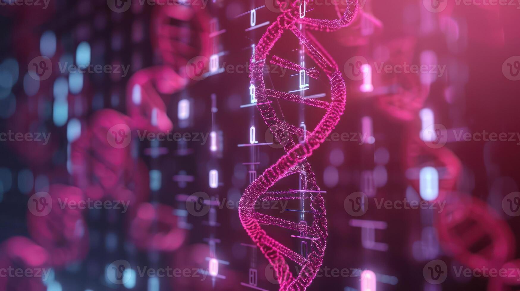 Abstract visualization of DNA strands with glowing elements in a digital space, representing science Pro Photo