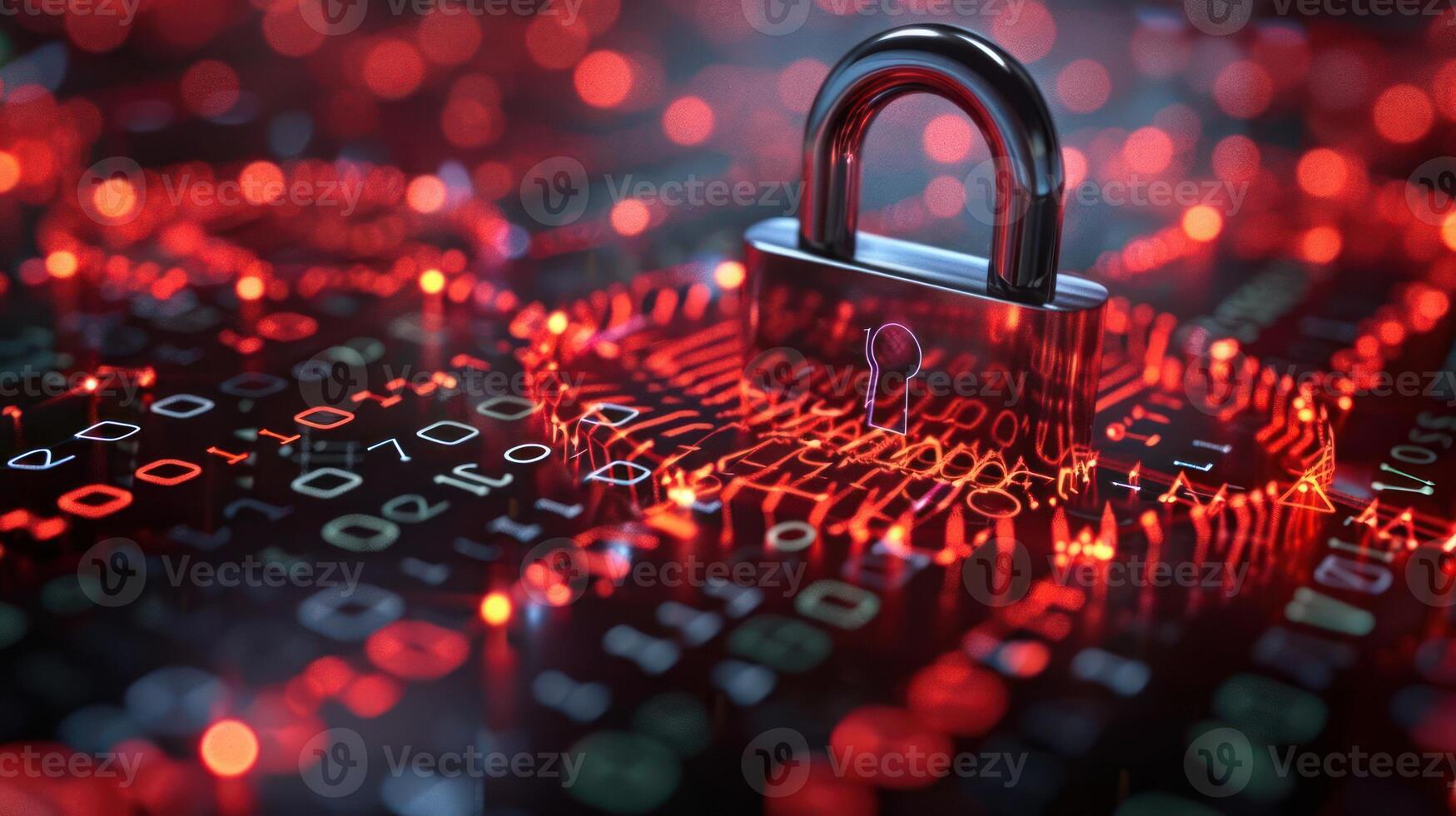 Digital padlock secured in a sea of binary code, symbolizing cybersecurity and data protection Pro Photo