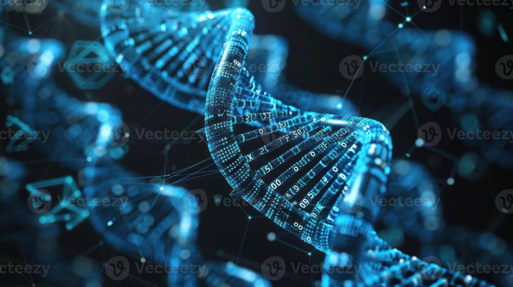 Abstract representation of DNA strands illuminated with digital data in a dark background Pro Photo
