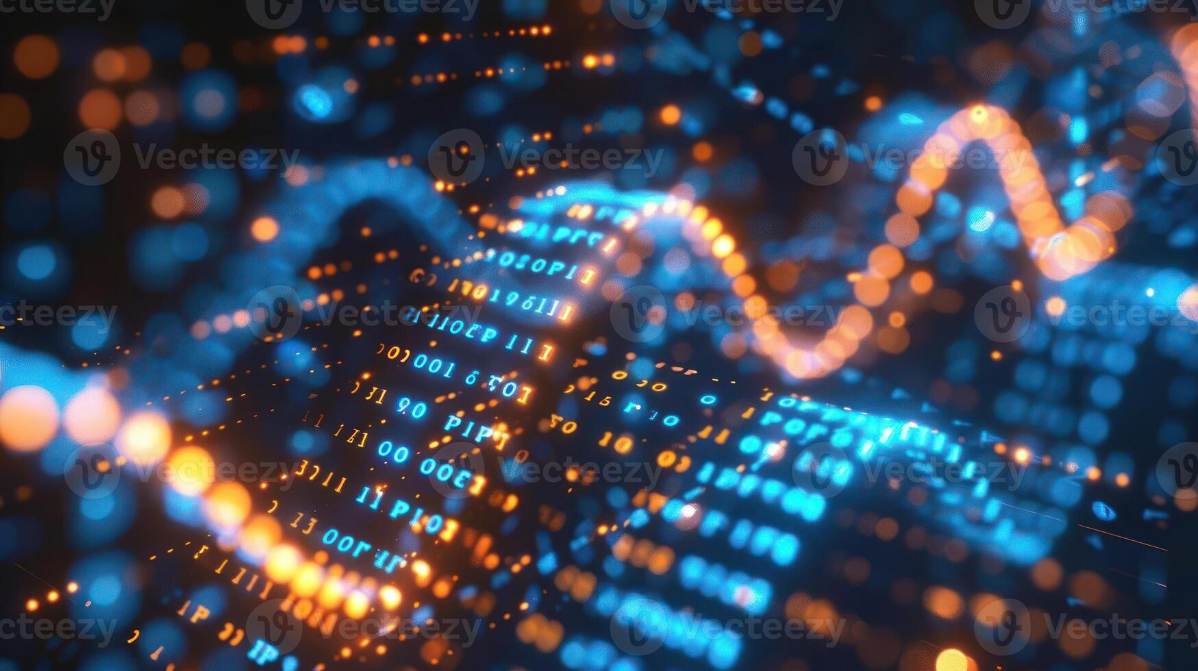 Abstract visualization of flowing data streams with vibrant blue and orange lights creating depth Pro Photo