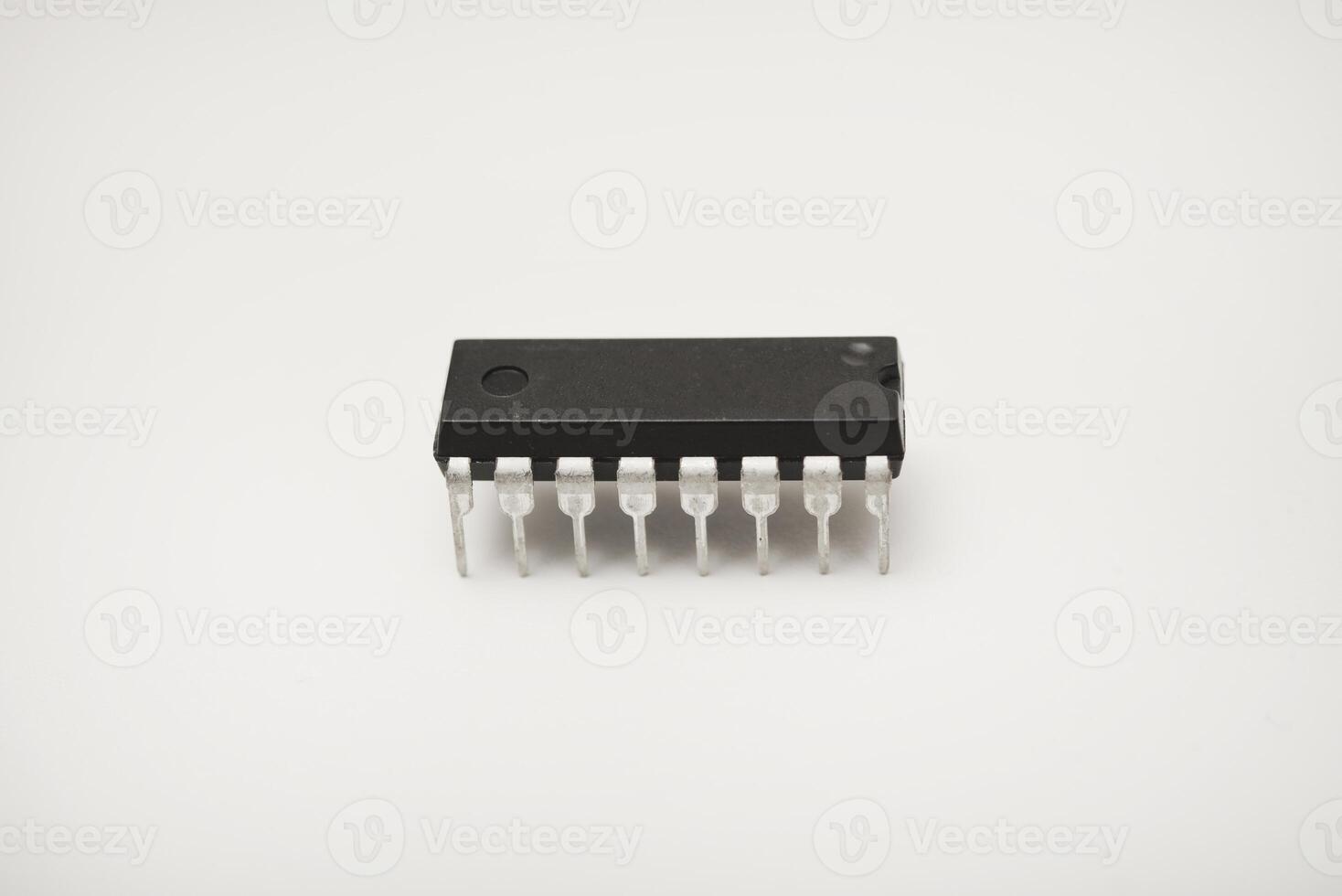 A microcircuit on white background. A computer chip. A component of semiconductor devices. Pro Photo