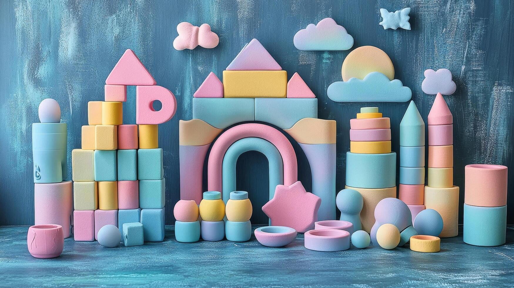 Colorful building blocks arranged creatively against a textured background in a playful setting photo