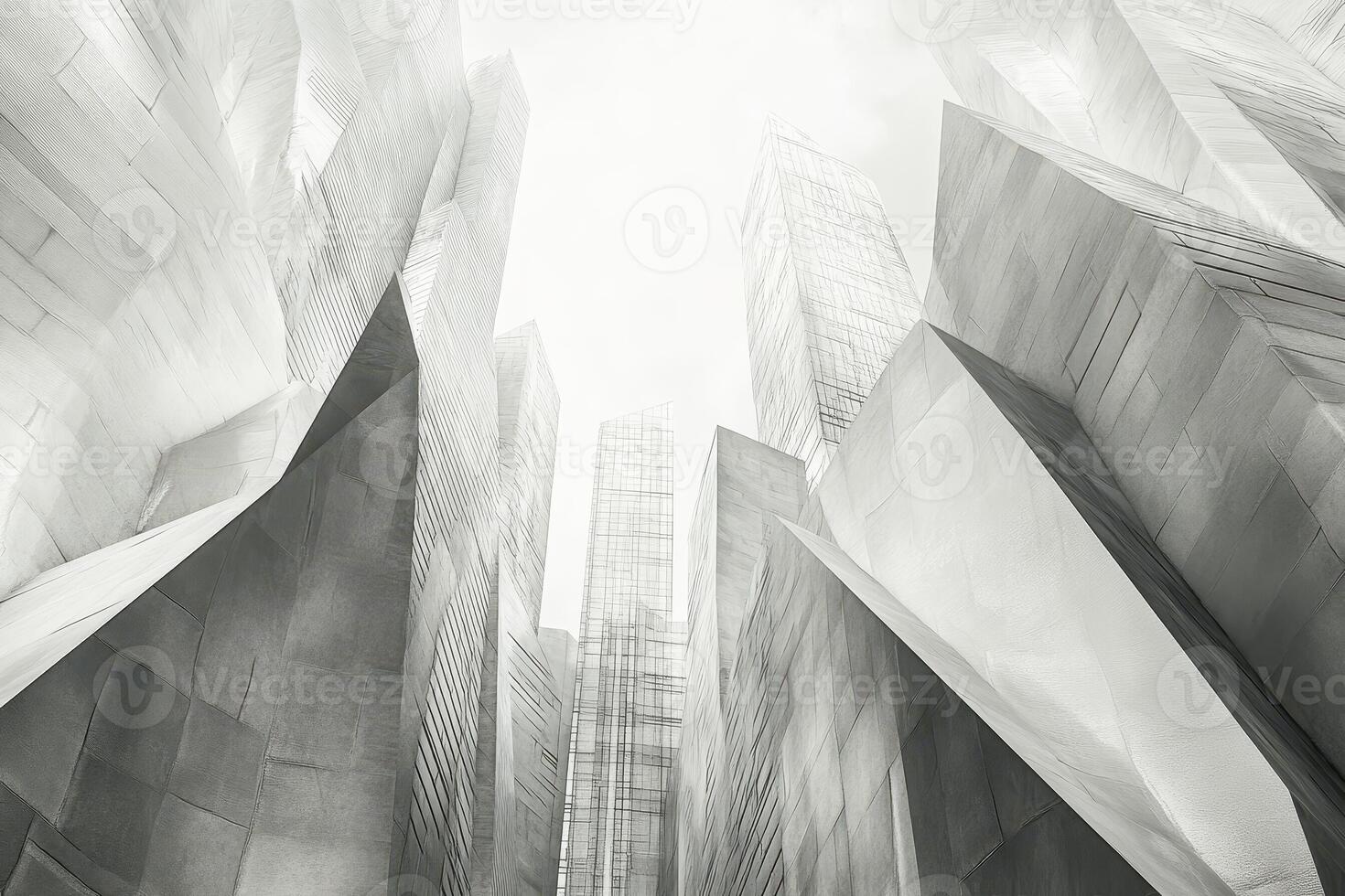 Abstract architectural structures tower upward in a grayscale perspective Pro Photo
