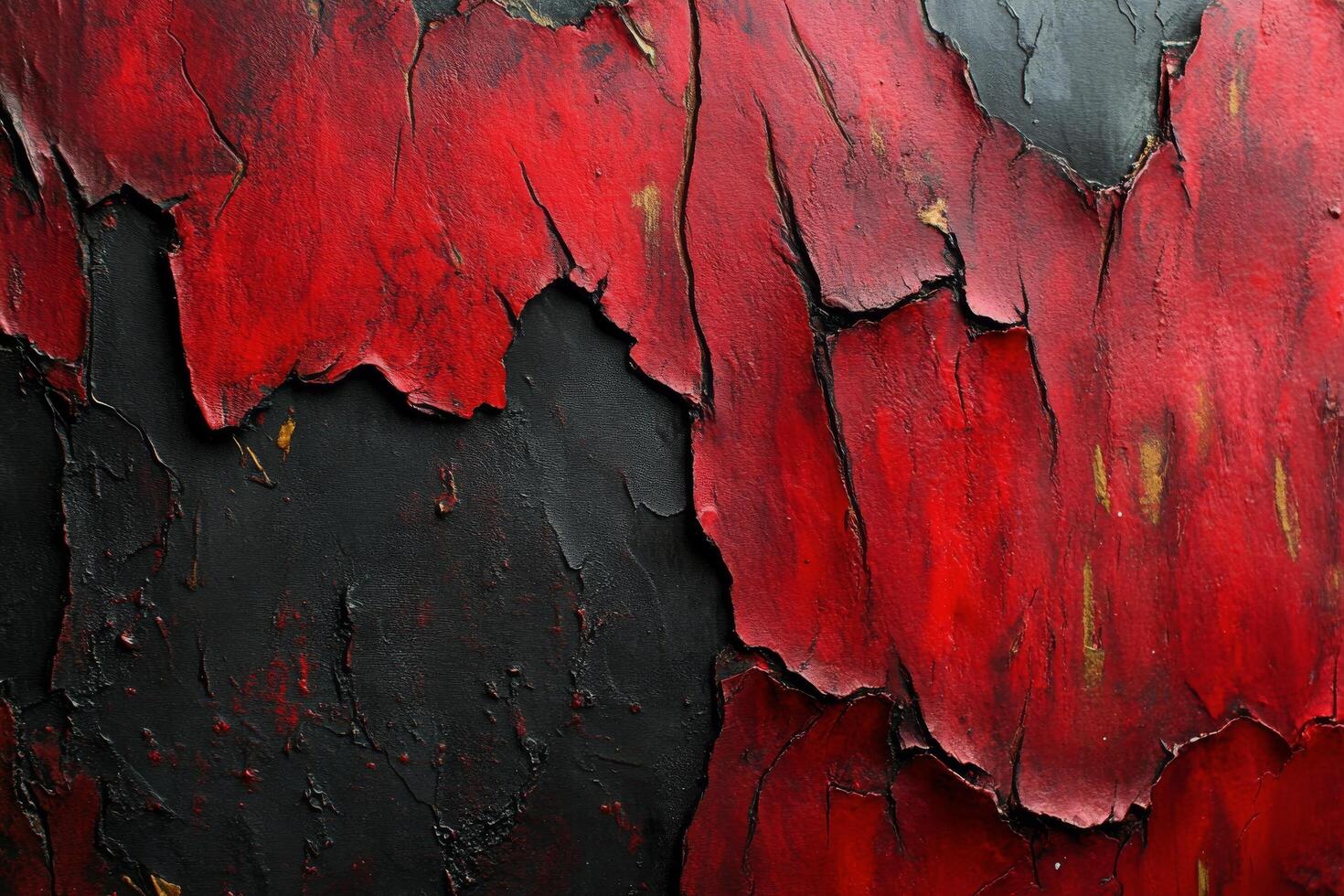 Abstract texture of cracked red and black surface with deep contrasts and intricate patterns Free Photo