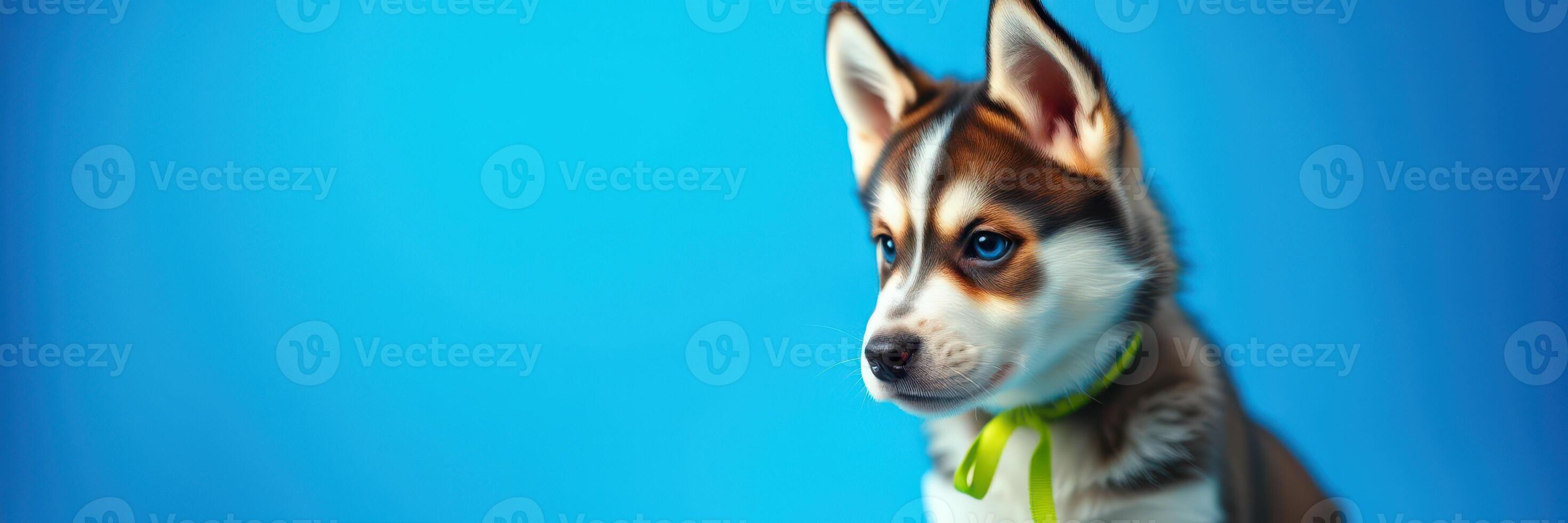 Cute puppy with distinctive fur pattern and vibrant background during playful moment in a studio setting Pro Photo