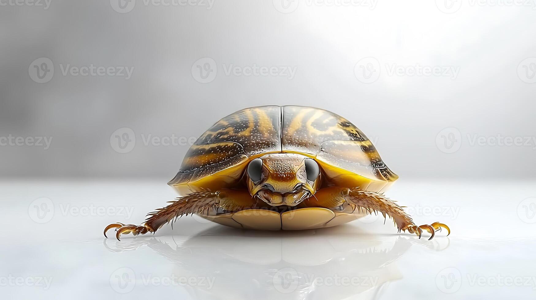 Close-up of a turtle on a reflective surface, showcasing intricate shell patterns and textures Pro Photo