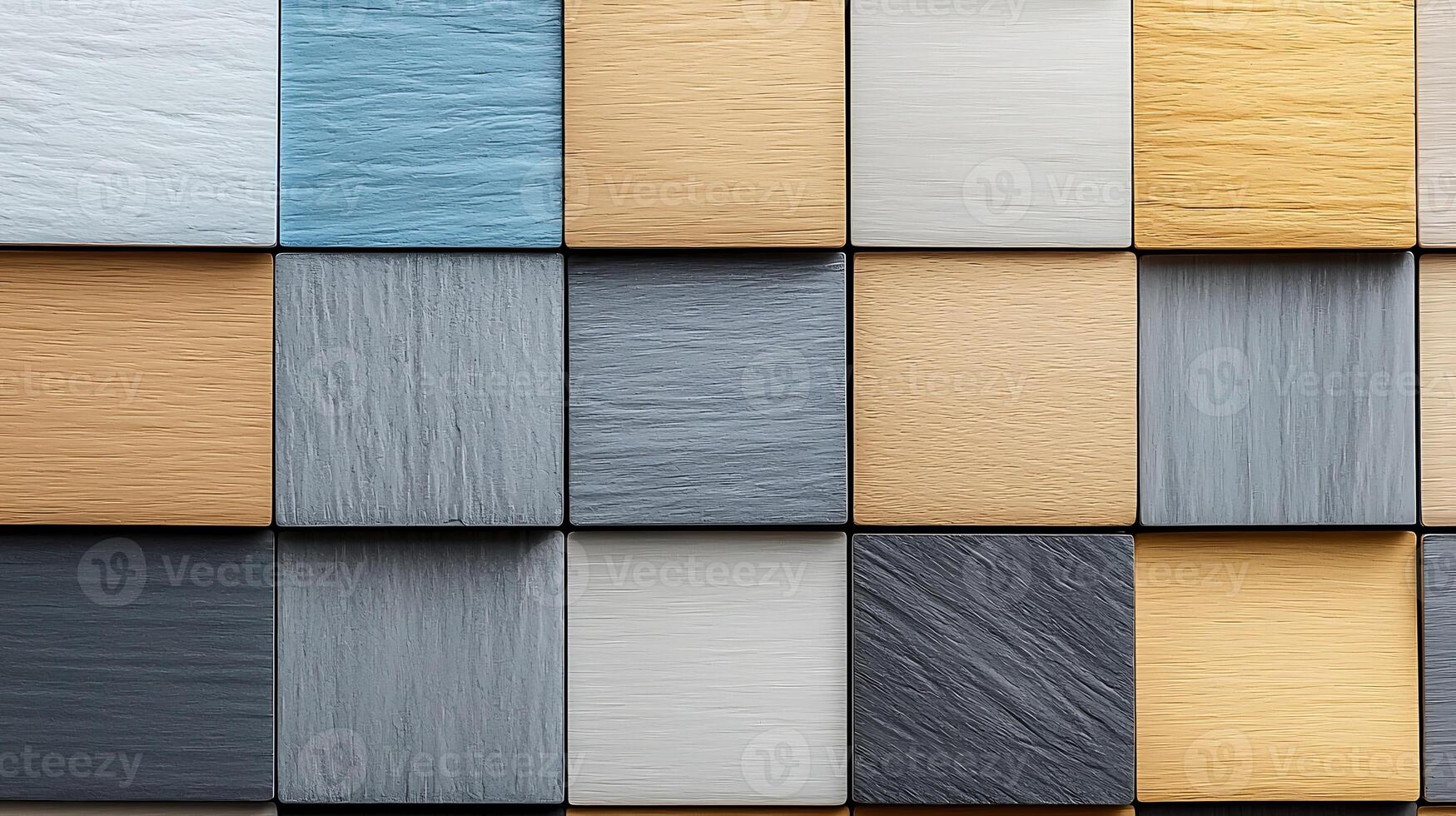 Close-up view of textured tiles in various colors arranged in a grid pattern, showcasing design elements Pro Photo