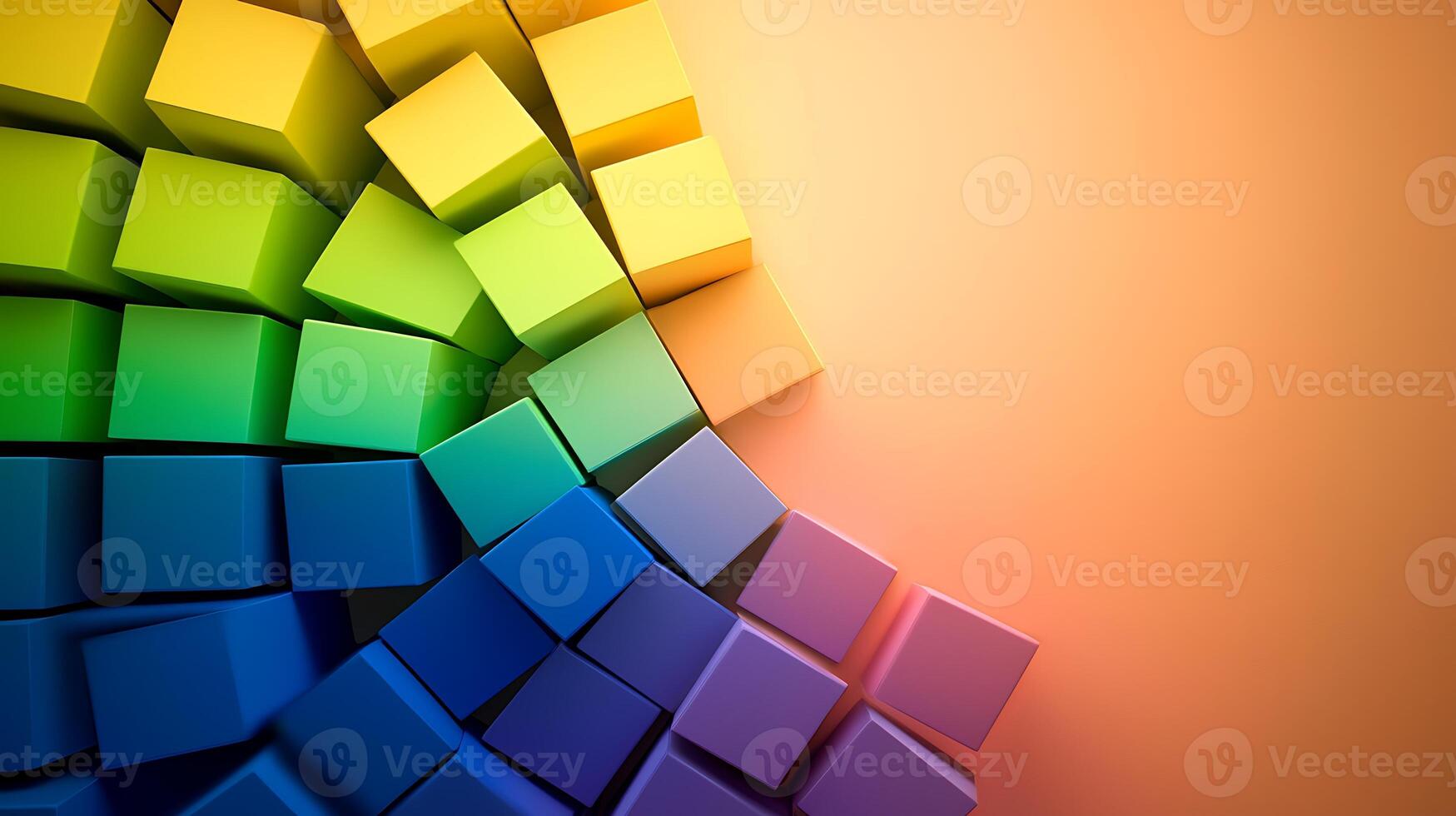 Colorful 3D cubes arranged in a gradient pattern, creating a vibrant visual effect Pro Photo