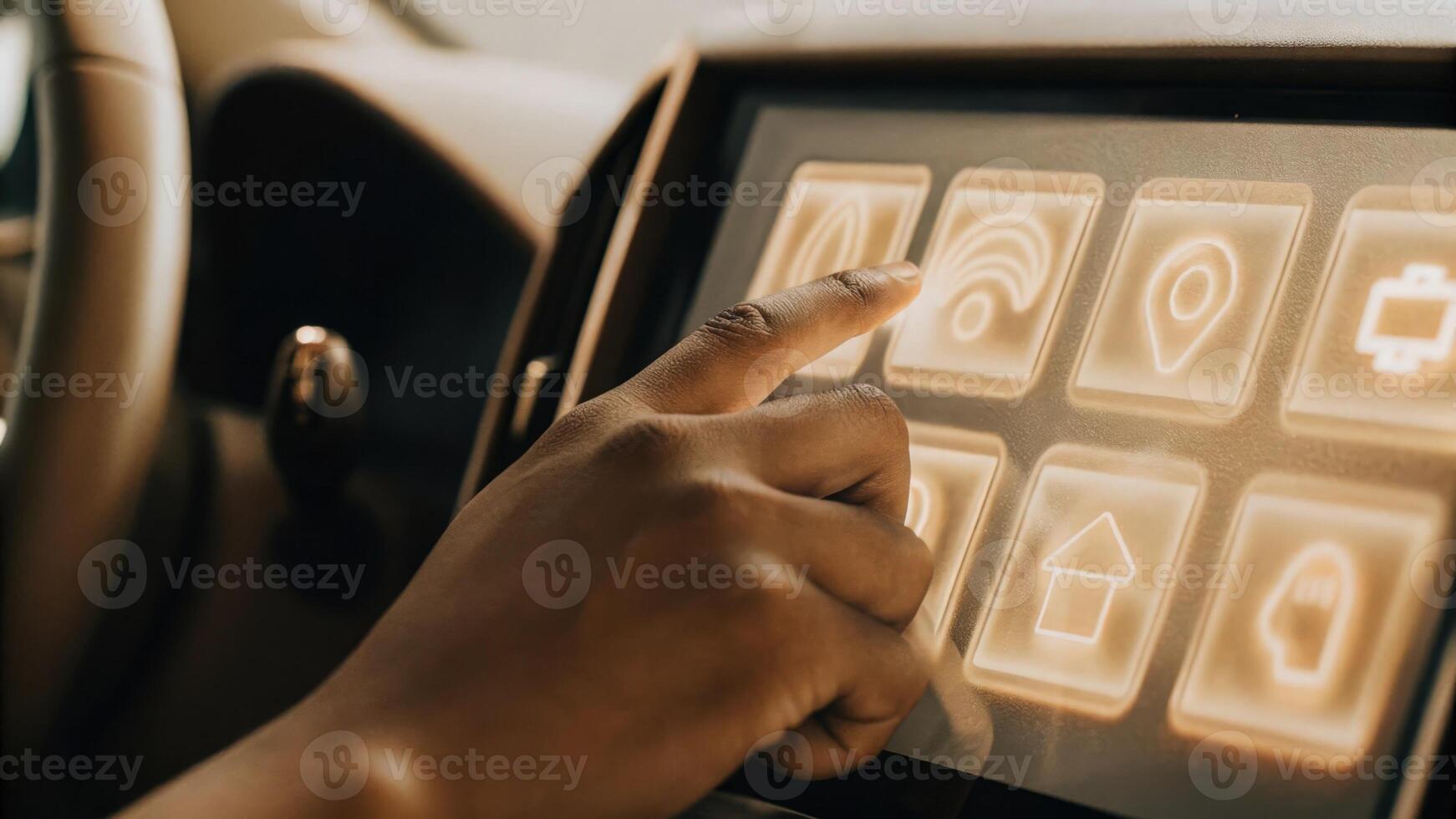A medium closeup of tactile interaction with a 3D dashboard where a user swipes through various performance metrics with glowing icons representing different data points.. Pro Photo