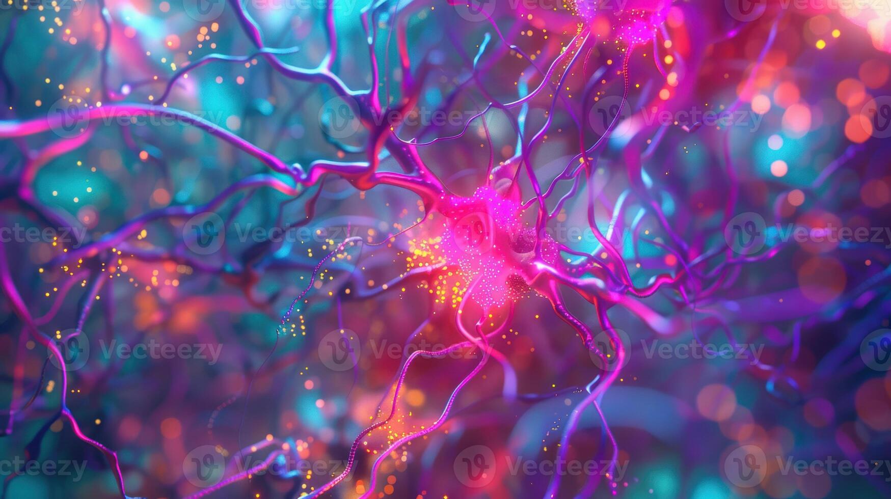 Glowing 3D Neural Network with Interconnected Nodes and Vibrant Data Streams Pro Photo