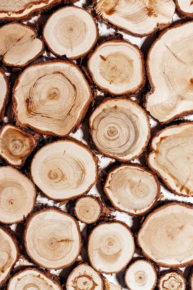 Natural background with Wooden tree trunk slices, close up woods with texture annual rings. Top view of cross section of juniper log, nature organic pattern. Sawed timber with tree rings Pro Photo