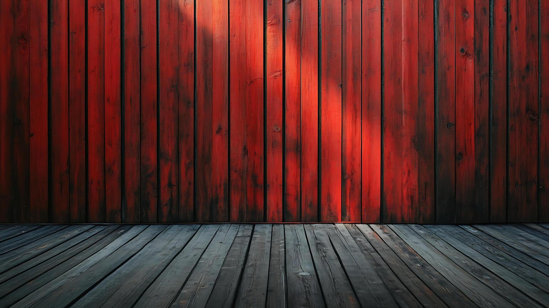 Wooden planks with aged, red stain create a rustic background. Light and shadow add depth and texture to the weathered surface. Free Photo