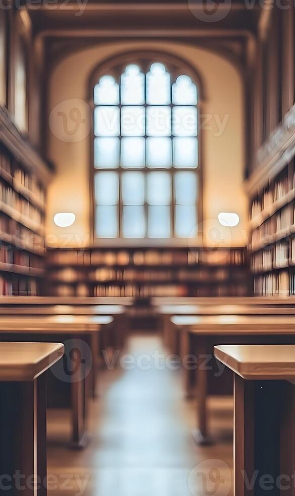 Serene and Expansive University Library with Rows of Tables and Stacks of Books Pro Photo
