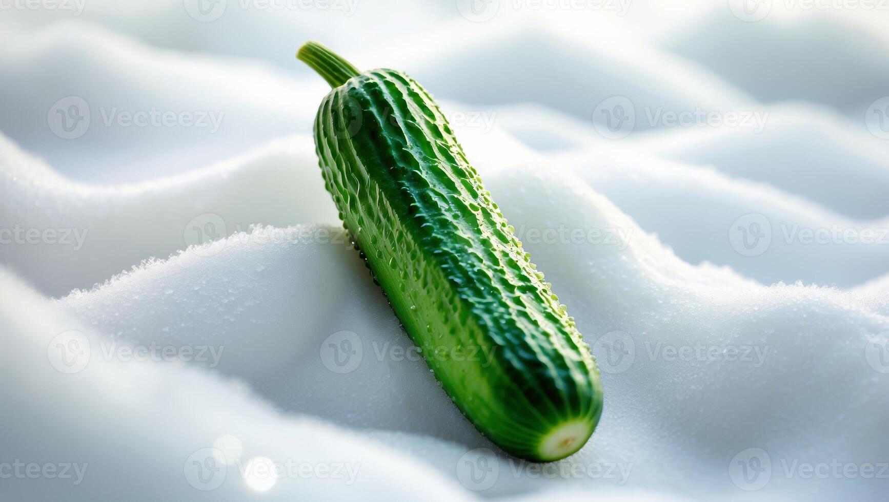 Fresh cucumber resting on soft white surface with subtle texture in bright lighting Pro Photo