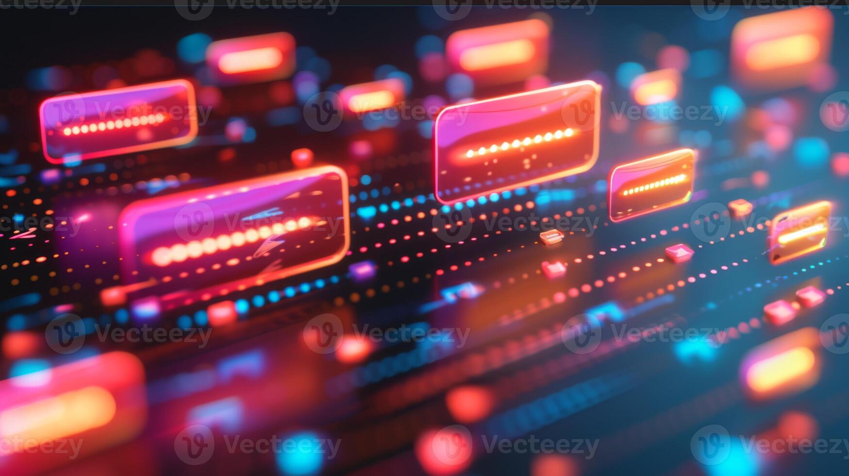 Vibrant neon lights and abstract shapes create a dynamic visual representation of technology in a modern setting during a digital art event, showcasing innovation and creativity. Pro Photo