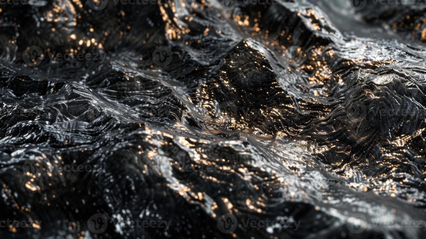 Dark waves ripple across the surface, catching shimmering light from various angles. The intricate textures create a mesmerizing visual effect that captivates the viewer's attention. Pro Photo