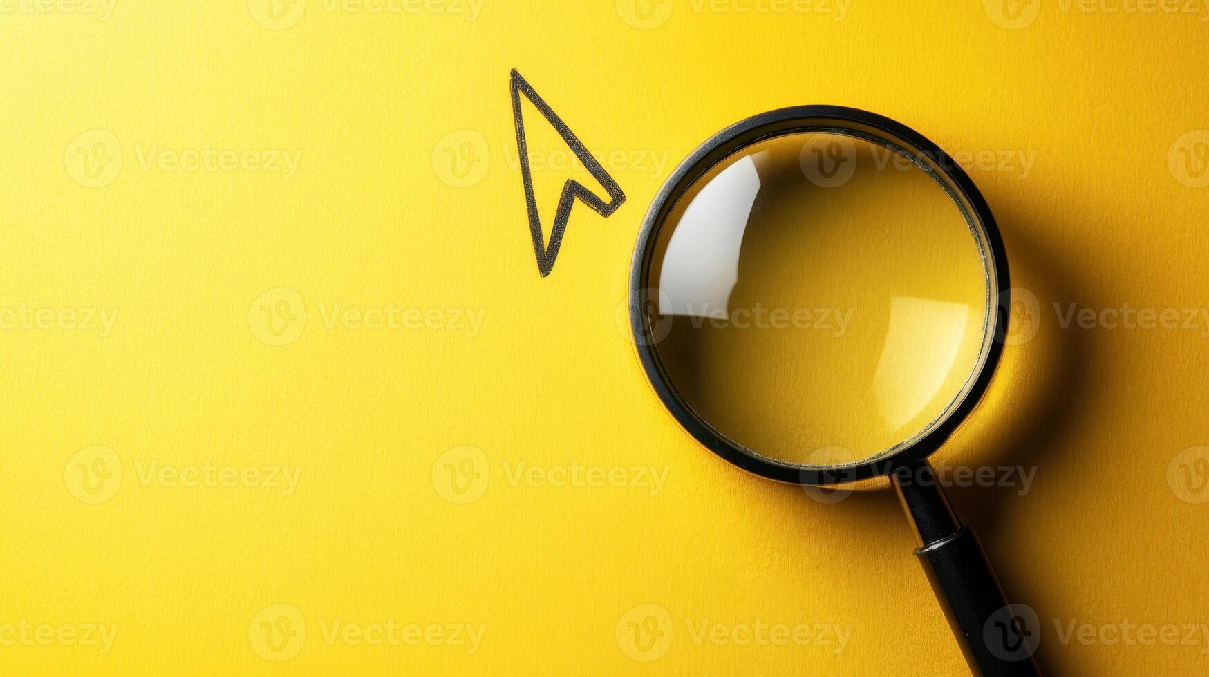 Magnifying Glass on Yellow Background with Arrow Cursor Symbolizing Search and Exploration Concept Pro Photo