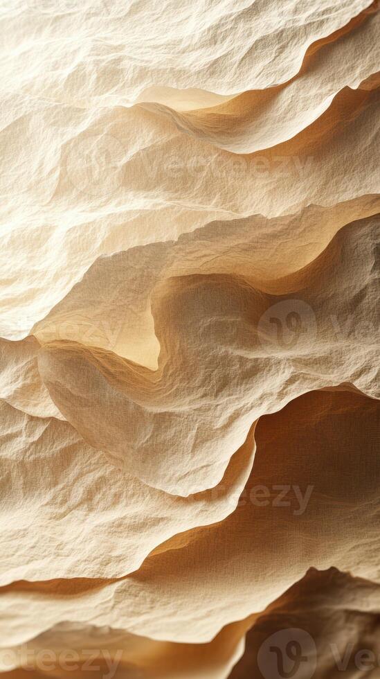 Textured layers of crumpled paper create a warm, abstract composition with curved forms and soft light in a neutral palette Pro Photo