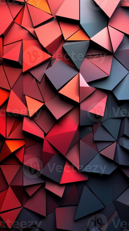 Geometric abstract wall with interlocking triangular shapes in bold red and deep blue tones Pro Photo