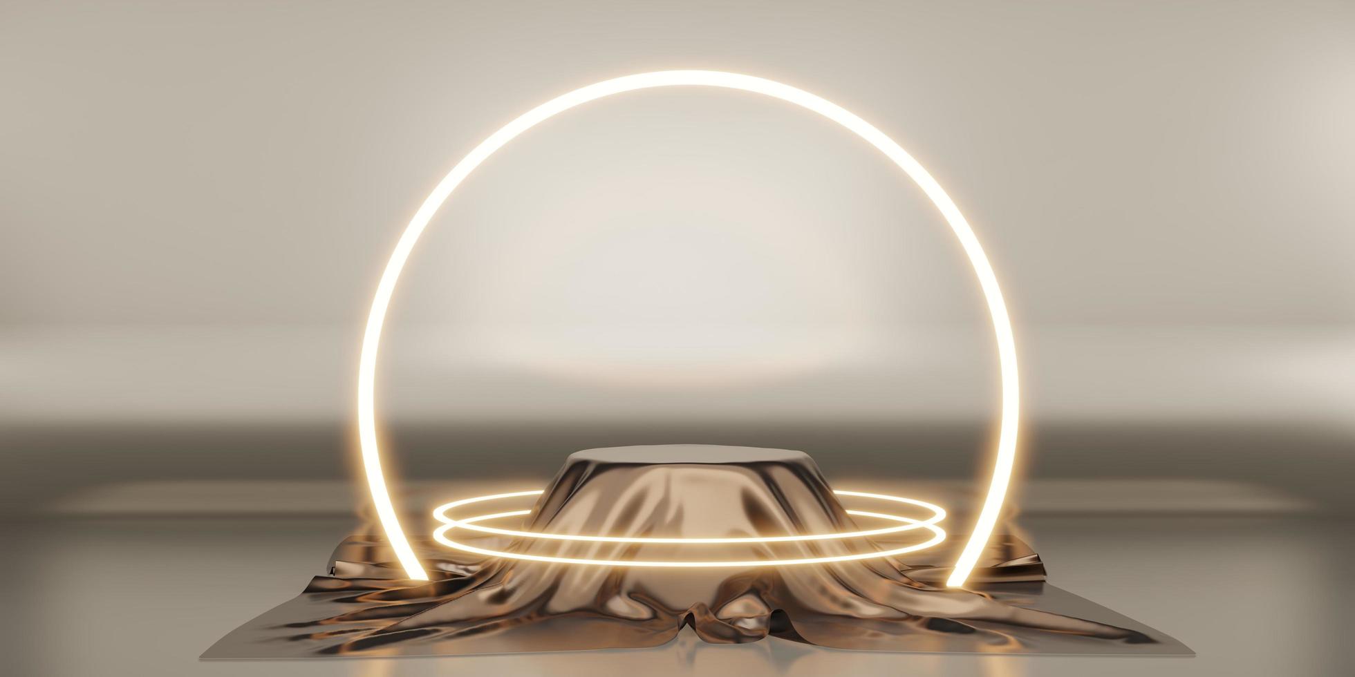 backlit display with curved frame display stand neon light black background 3D rendering photo