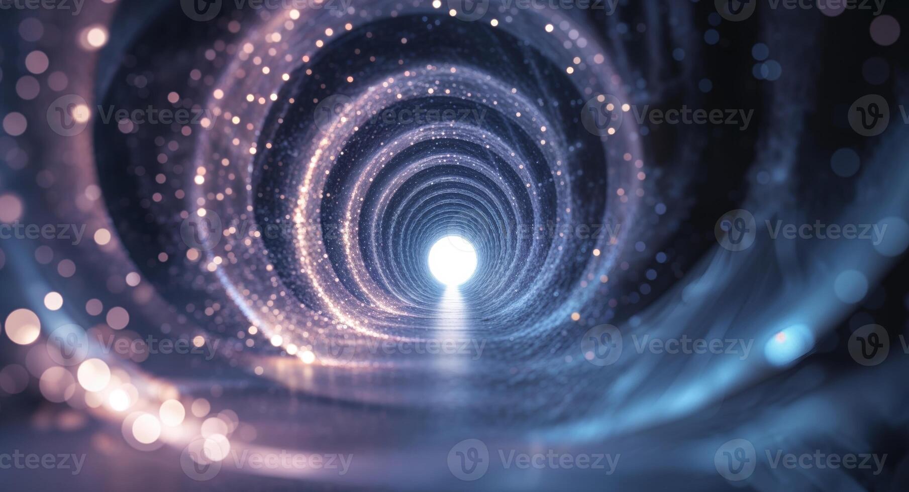 Glowing particles form abstract circular tunnel with depth of field. Pro Photo