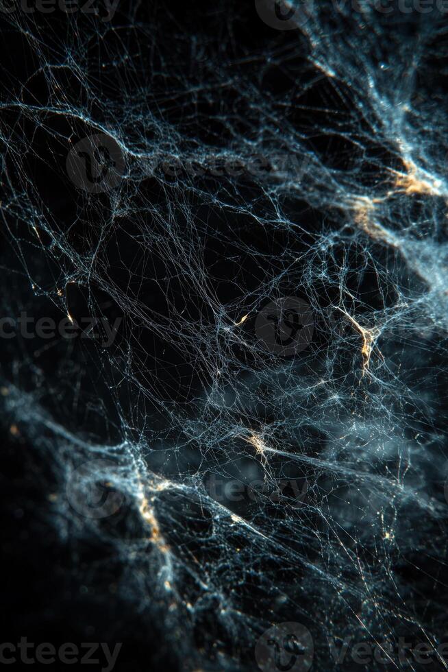 Abstract close-up of intricate spiderweb patterns against a dark background Pro Photo