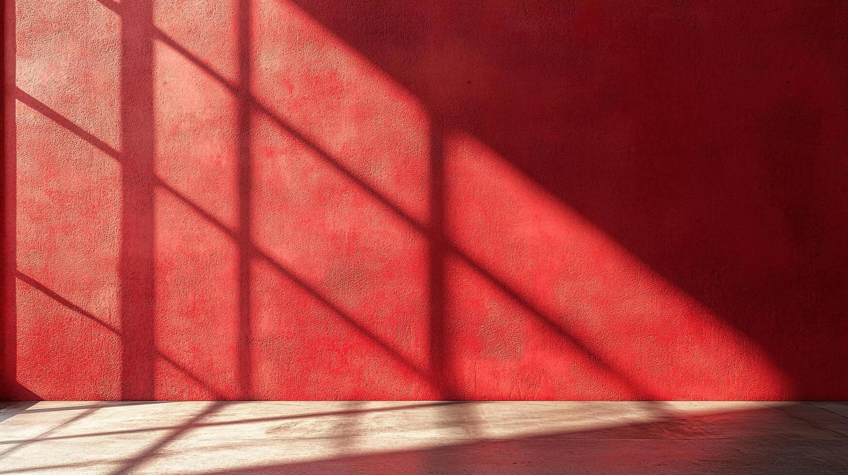 Abstract red wall illuminated by window shadows, creating a geometric pattern and adding depth and warmth to the composition. Free Photo
