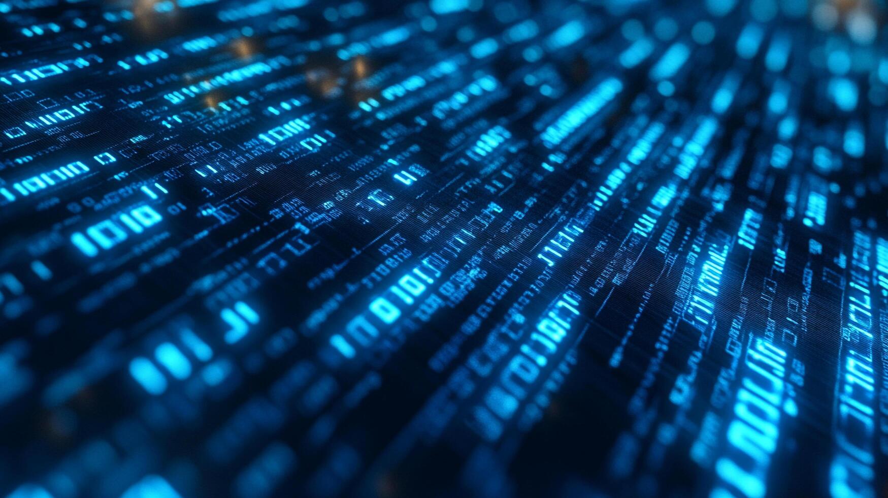 A mesmerizing display of glowing digital data, illuminated in vibrant shades of blue, showcasing intricate code and binary patterns in high resolution. Free Photo