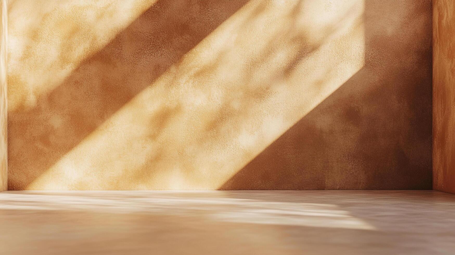 An atmospheric shot of light and shadow patterns across a textured wall, creating a serene and minimalist aesthetic. Warm, inviting tones. photo