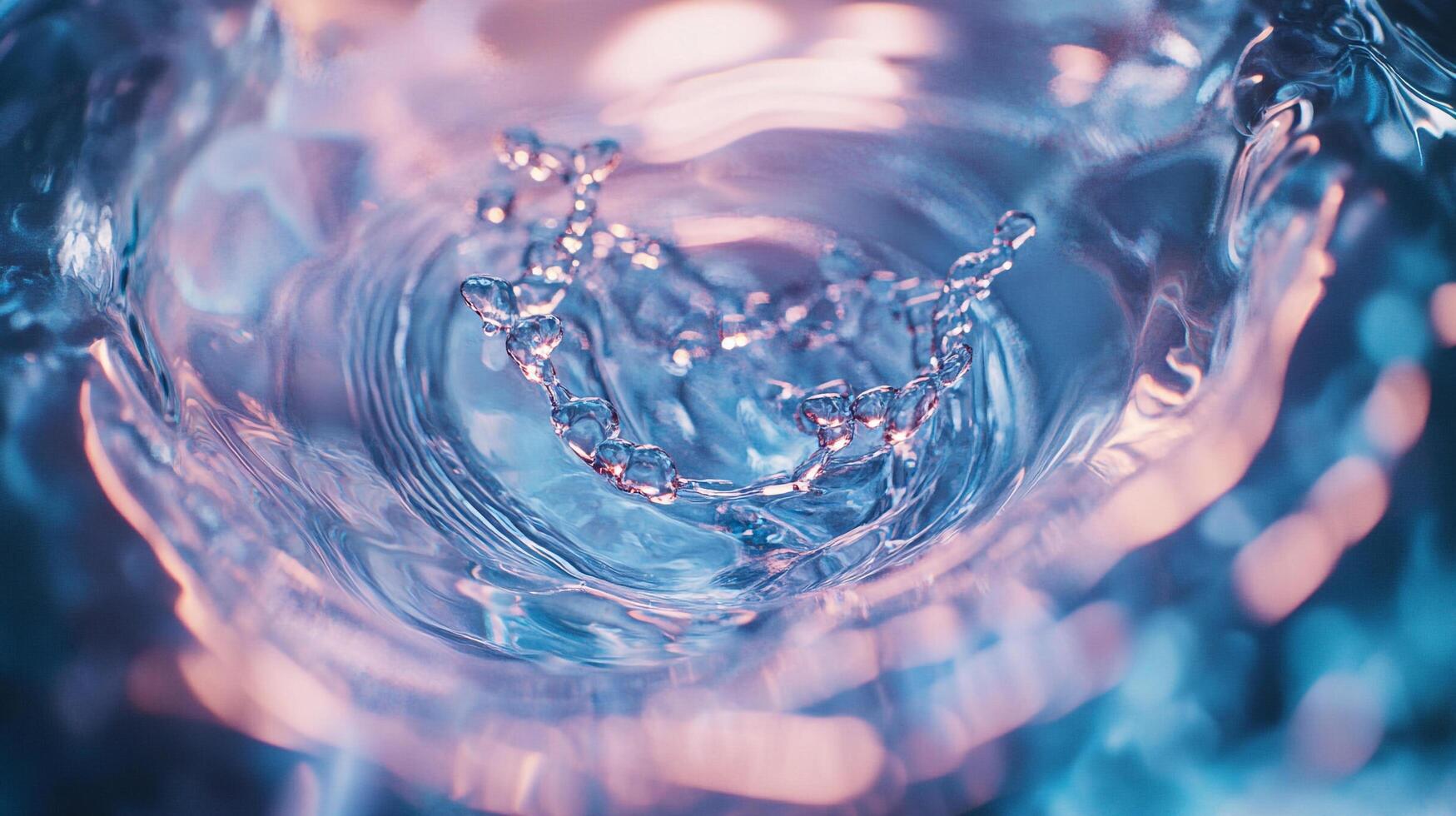 A mesmerizing swirl of clear liquid capturing a unique flow pattern, enhanced by soft, diffused lighting and subtle color gradations. photo