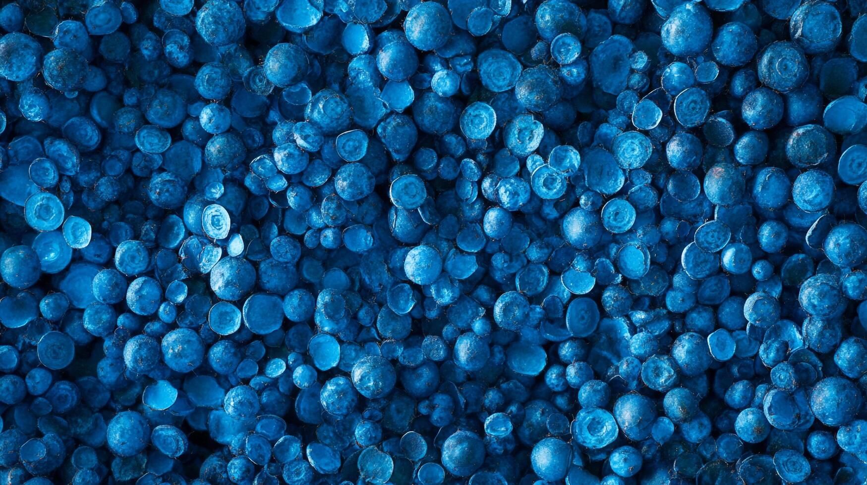 Intense view of tightly packed, vibrant blue spheres fills frame, creating an abstract and visually engaging texture and dynamic pattern. Free Photo