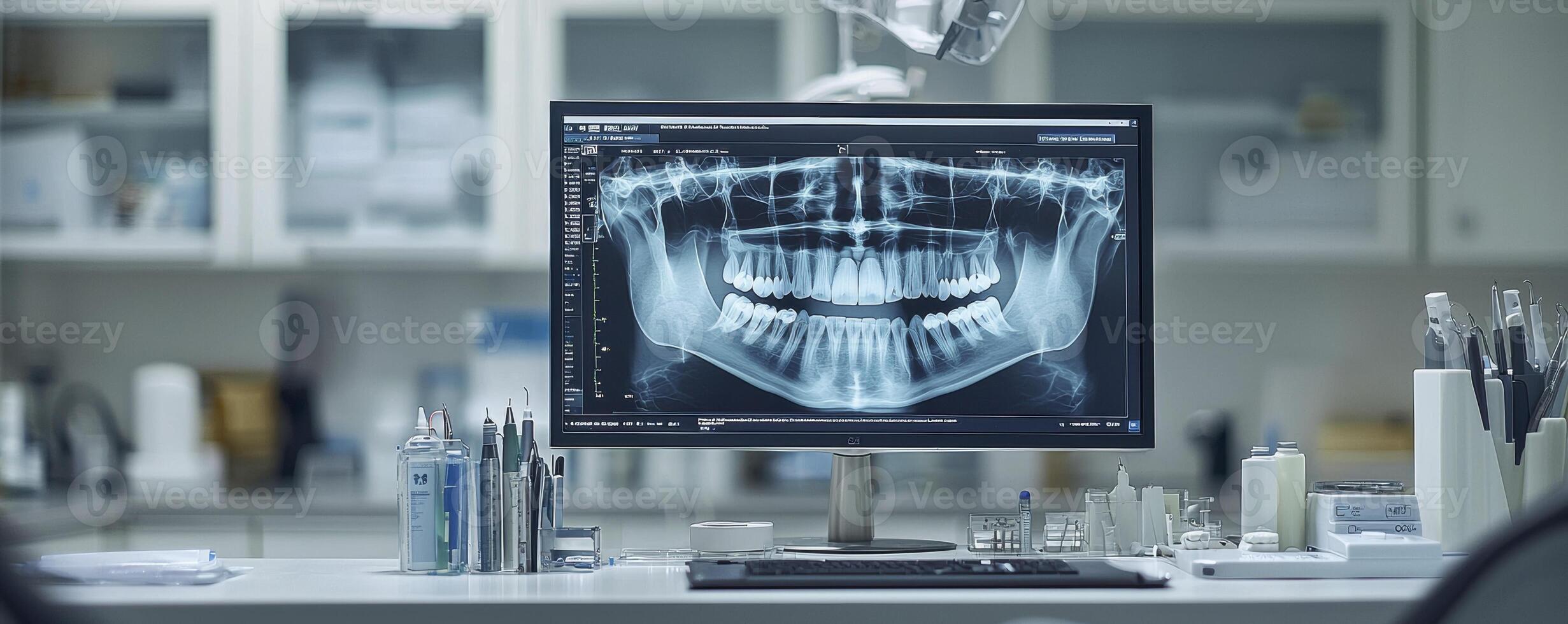 The advanced AI-powered dental analysis system meticulously scans a patient's oral X-ray images, employing cutting-edge algorithms for precise diagnostics This innovative technology enhances dental Pro Photo