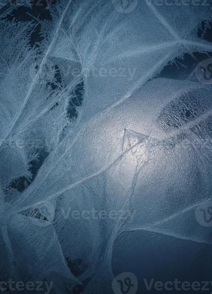 Frosty patterns on window glass. Winter background. Toned. Frozen Ice Patterns Pro Photo