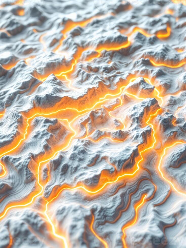 Abstract background of the glowing surface of the earth. 3D rendering. Glowing Mountain Ranges Pro Photo