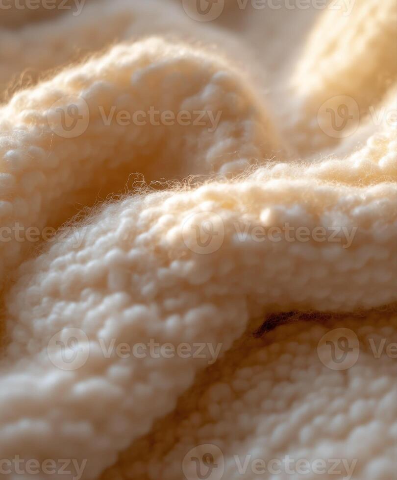 Close-up view of soft boucle fabric showcasing its texture and warmth Pro Photo