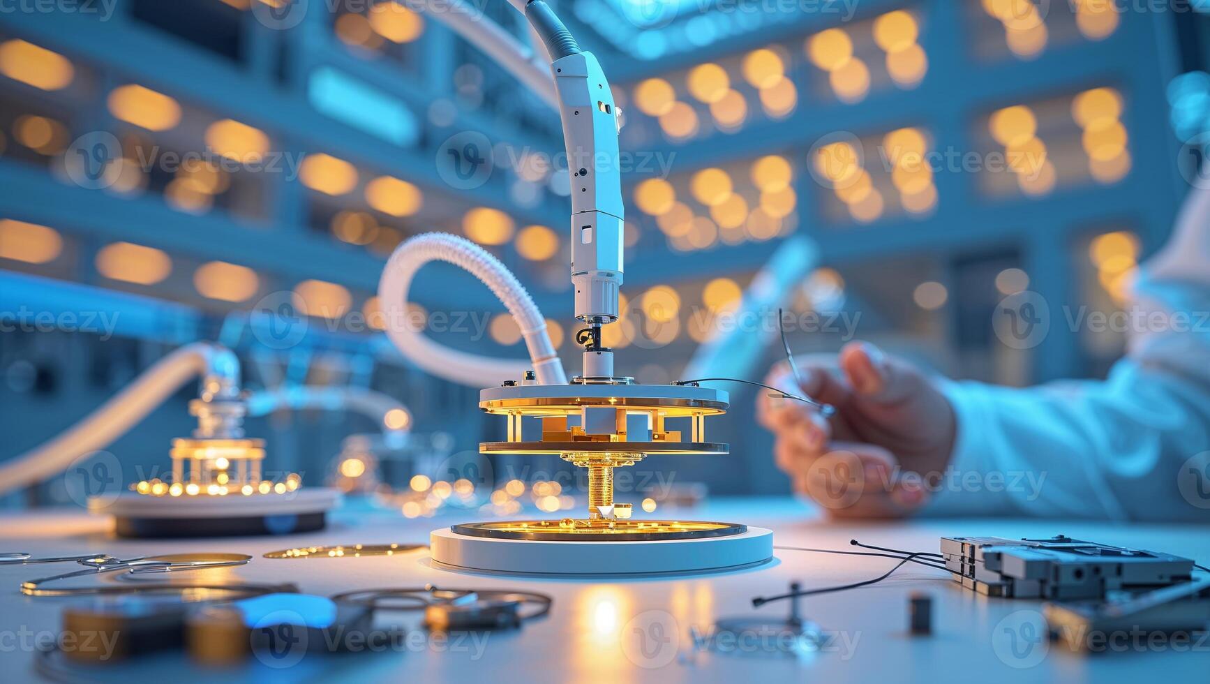 Advanced robotics performing precise tasks in a modern laboratory at night Pro Photo