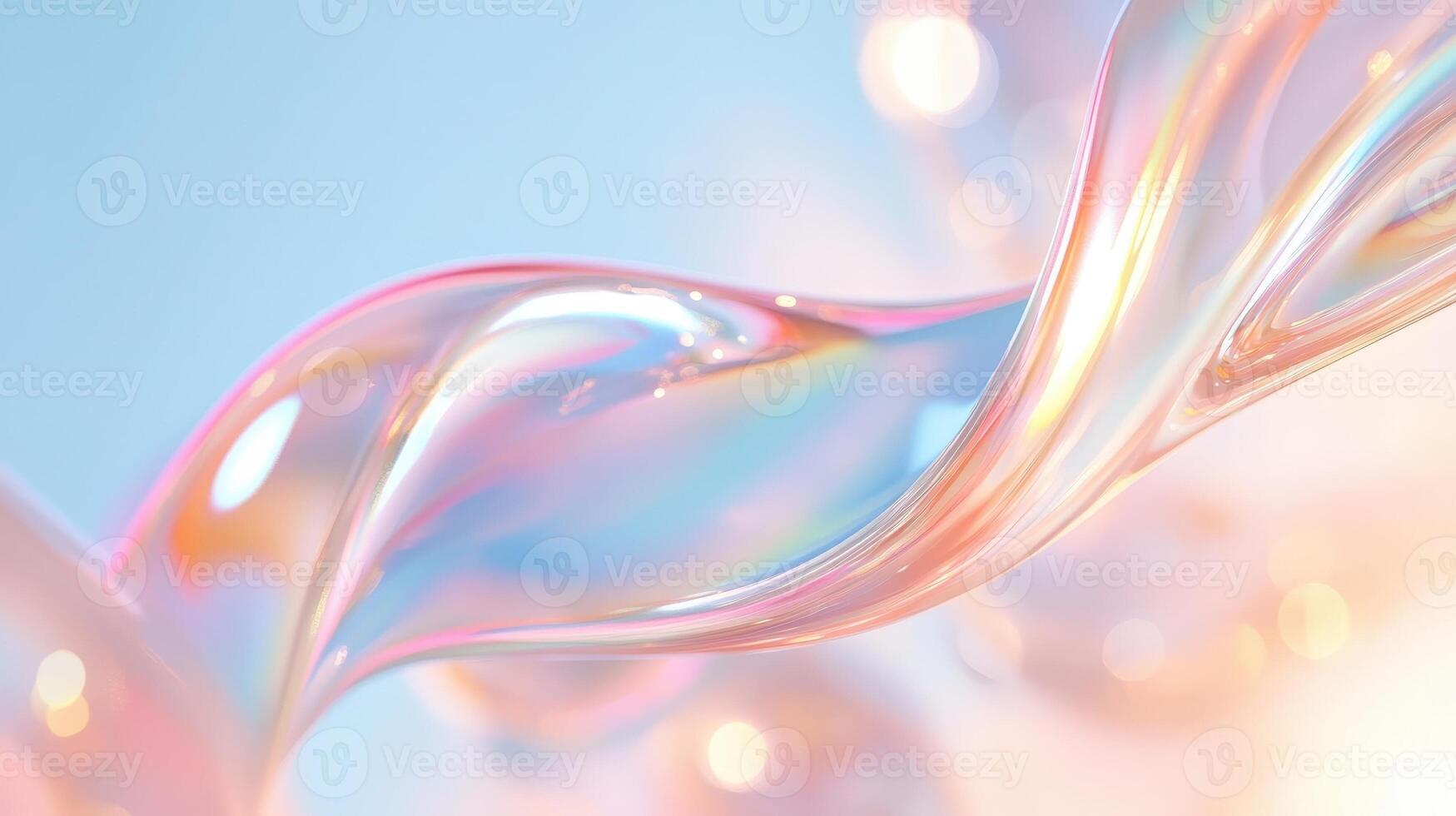 Smooth holographic liquid flowing and swirling against a soft pastel gradient backdrop creates an composition and abstract background, ethereal 4K Pro Photo