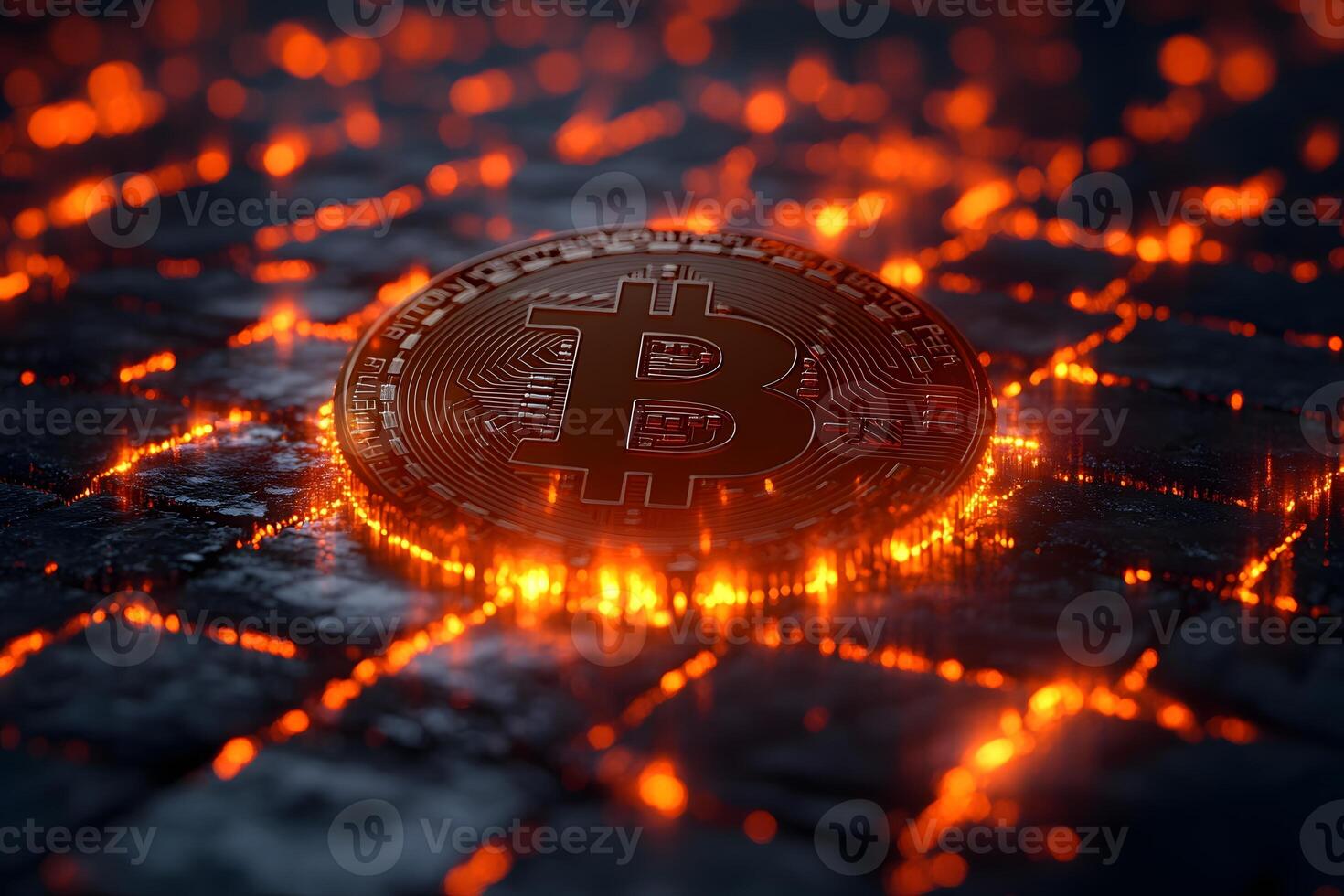 Bitcoin Symbol on Glowing Network Grid - Cryptocurrency and Blockchain Concept Pro Photo