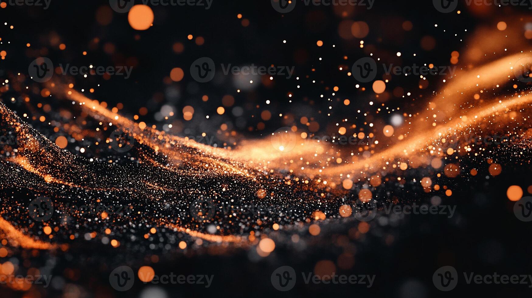 Abstract digital particles flowing in dark space. Particles are orange and dark, creating a wavy effect Pro Photo