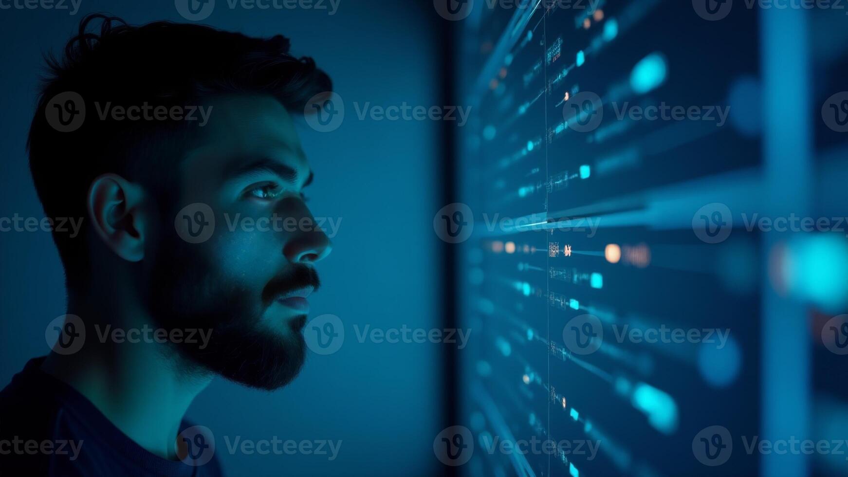 Man Viewing Digital Data Stream On Screen Pro Photo
