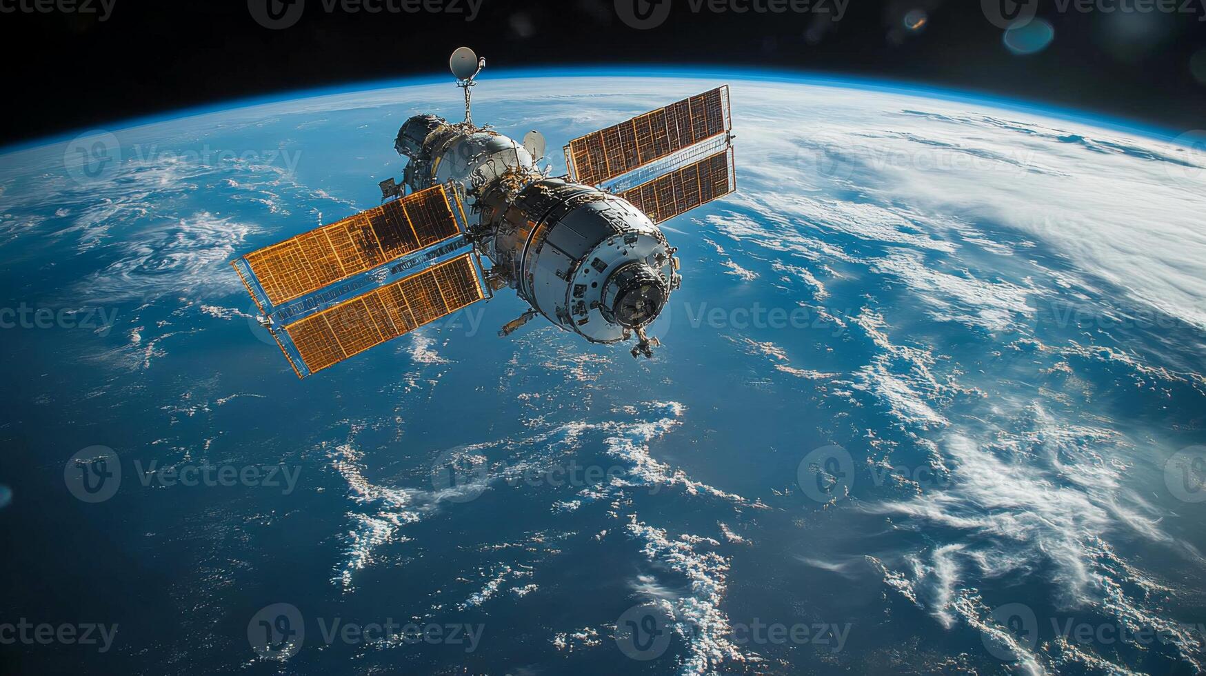 Orbiting spacecraft utilizes satellite technology to transmit telemetry data from Earth's surface, enhancing global positioning and tracking systems through signals. Pro Photo