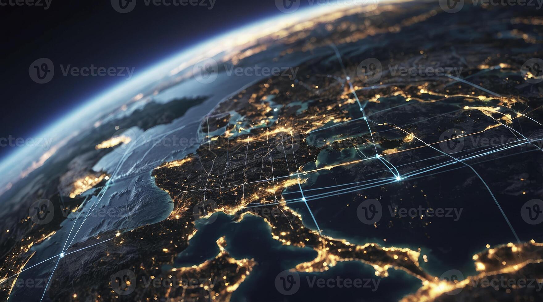 Earth View at Night with Digital Network Connection Lines Overlayed Pro Photo