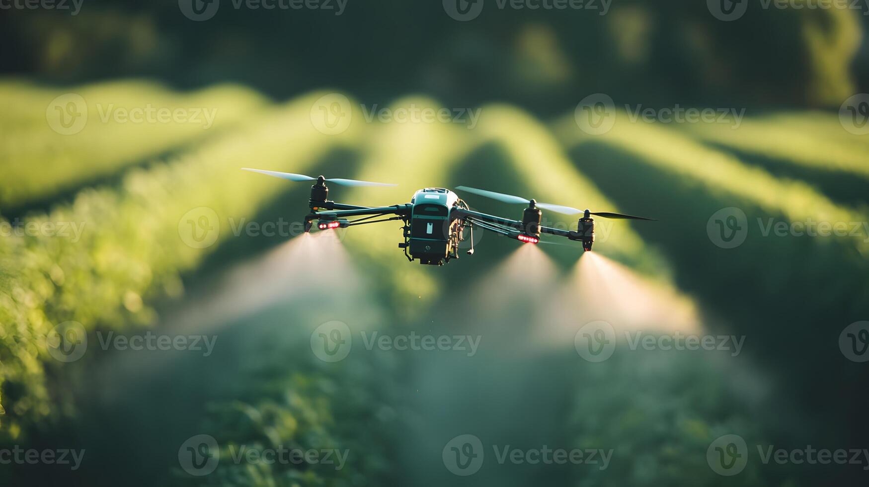 Expansive fields with drones mapping and spraying crops autonomously Pro Photo