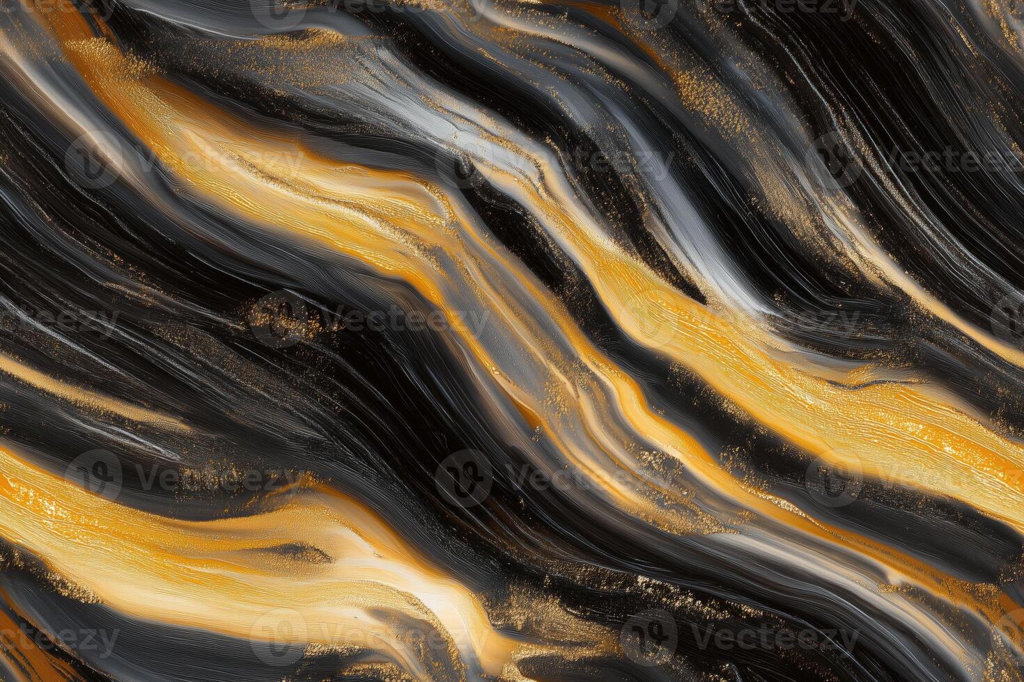 Seamless abstract painting featuring swirling patterns of black, gold, and white. The colors blend seamlessly, creating a dynamic and fluid appearance. Pro Photo