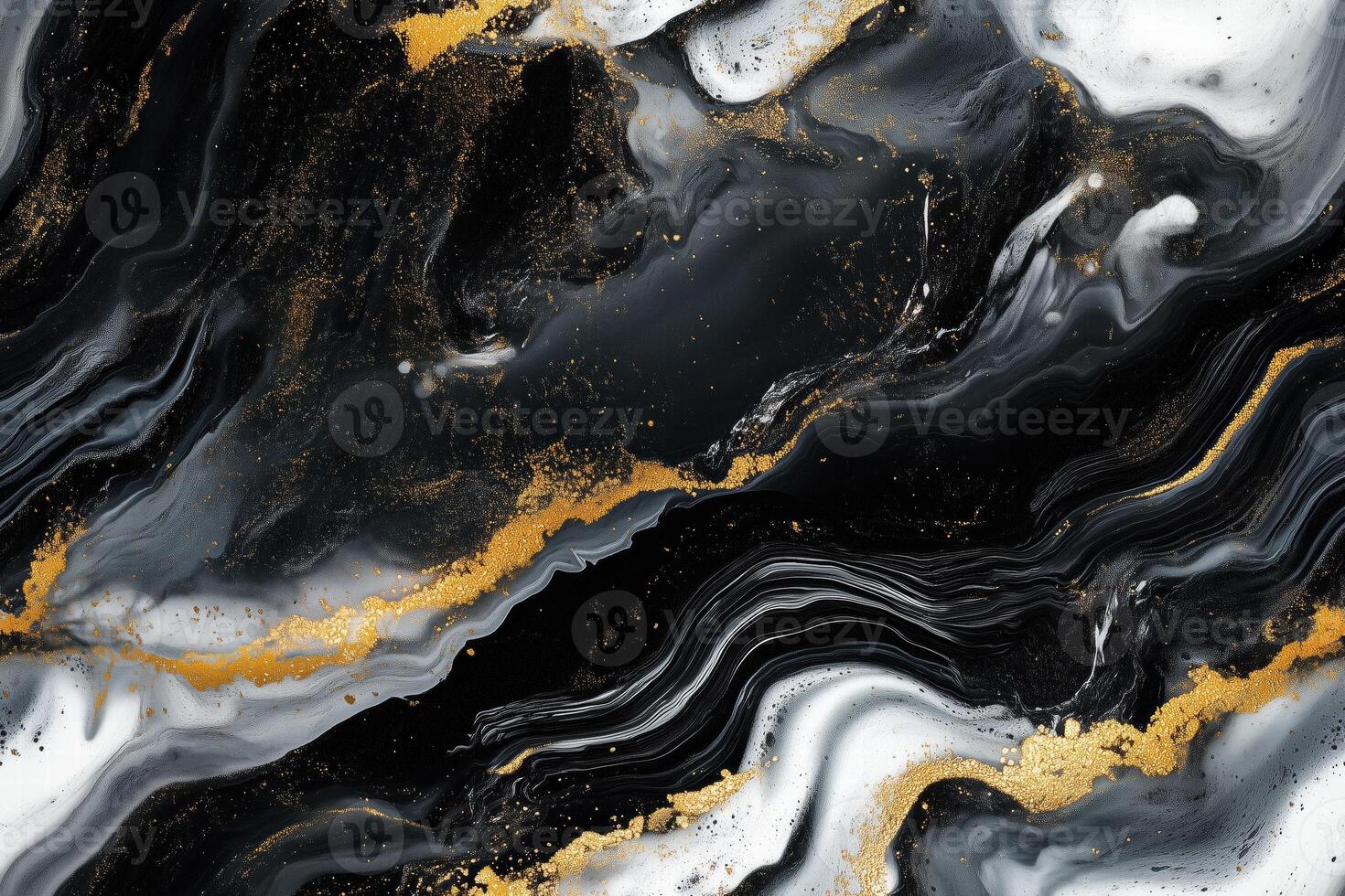 Seamless abstract background featuring swirling patterns of black, white, and gold. The design showcases fluid shapes and textures, creating a luxurious and modern aesthetic. Pro Photo