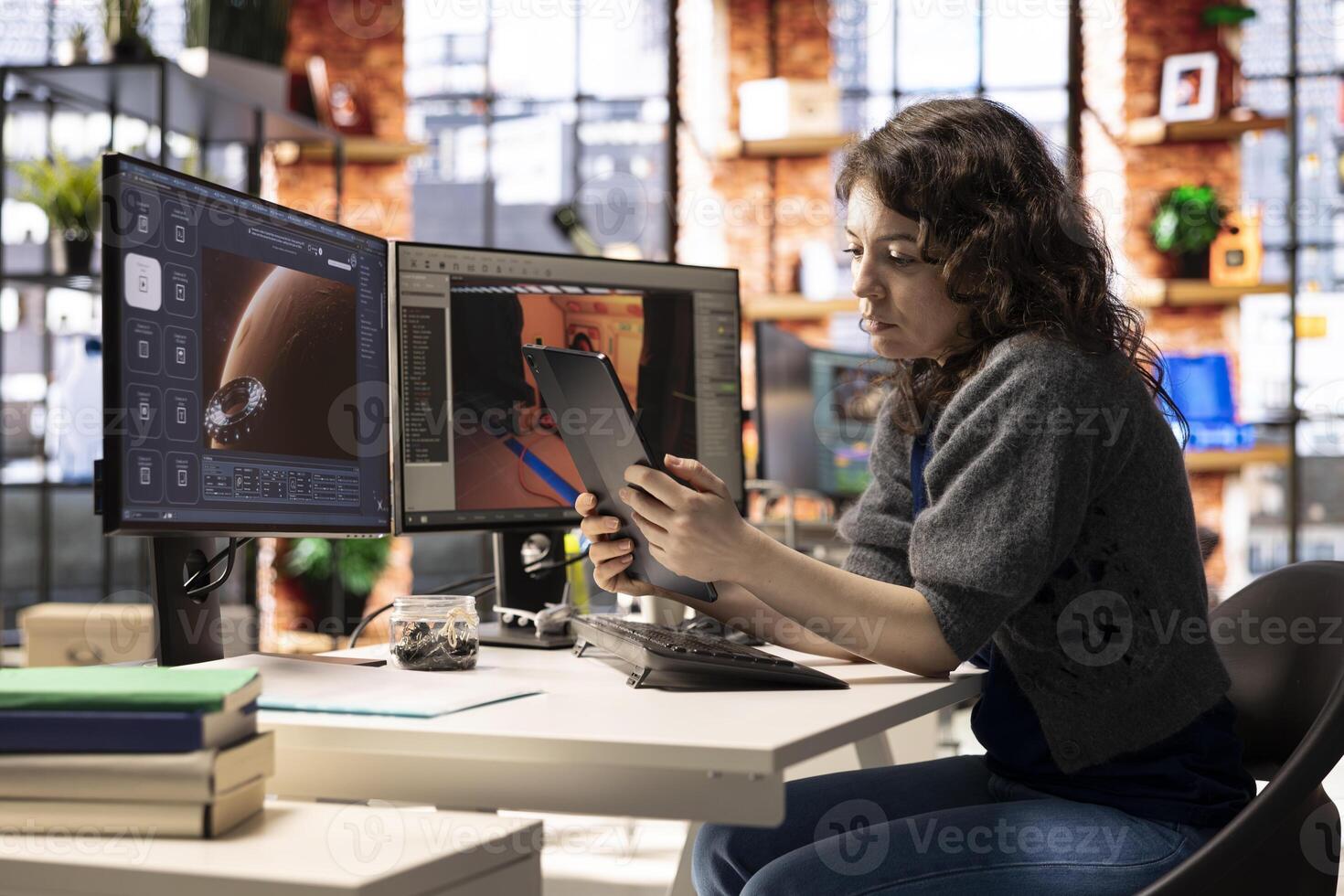 AI chatbot user commands a program to generate mars spaceship model, working with artificial intelligence to develop a futuristic sci fi game. Deep learning for design development. Pro Photo