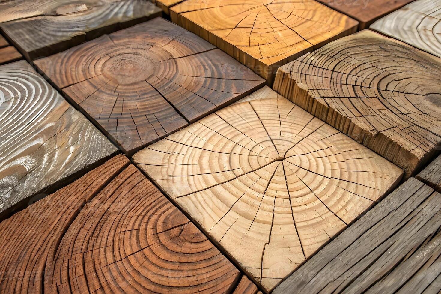 Unique patterns of wood planks arranged in a geometric layout for artistic display Pro Photo
