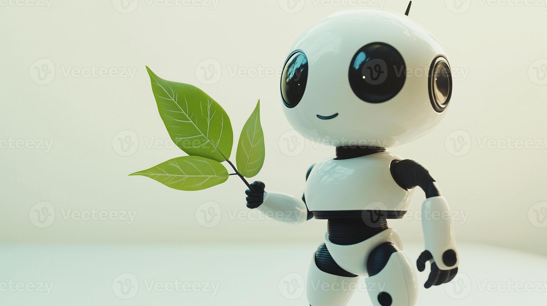 3D rendering of a cute robot with a leaf, isolated on a pastel background. 8 Pro Photo