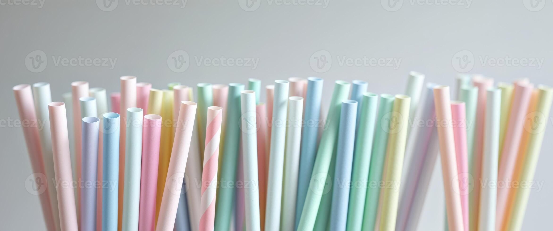 Array of Colorful Diagonal Straws in Pastel Shades Creating an Aesthetic and Playful Background Pro Photo